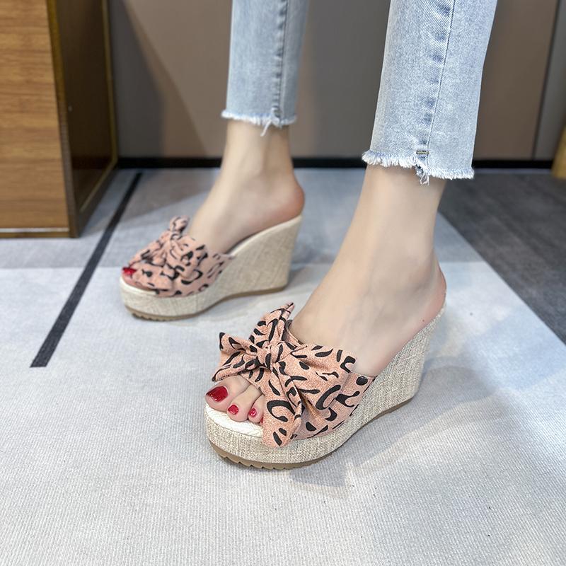 Женские шлепанцы на высокой танкетке, сандалии, тапочки на платформе с бантом, женские туфли без шнуровки, женские шлепанцы, повседневные шлепанцы с открытым носком