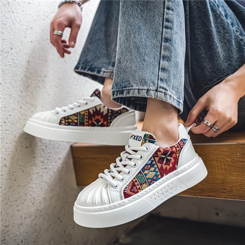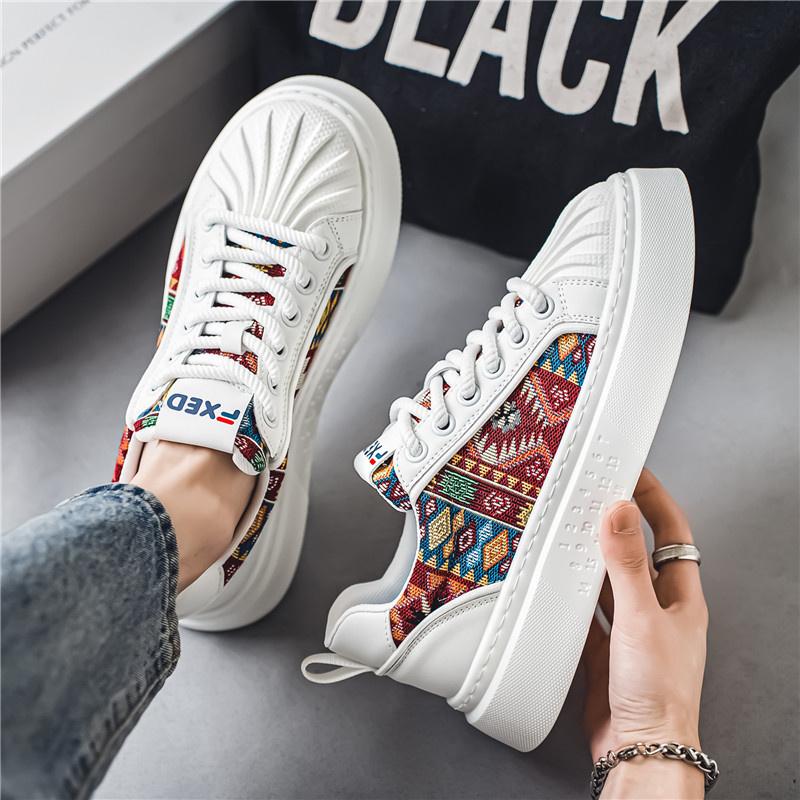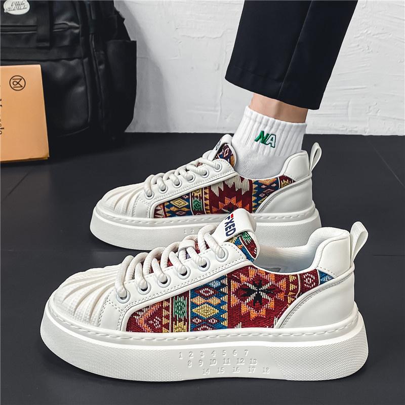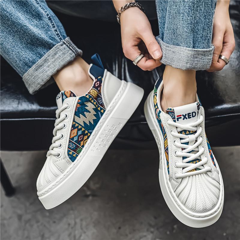 2024 Роскошные классические парусиновые туфли с ракушечным носком, мужские дизайнерские кроссовки из вулканизированной кожи с принтом, удобные повседневные мужские кроссовки на платформе