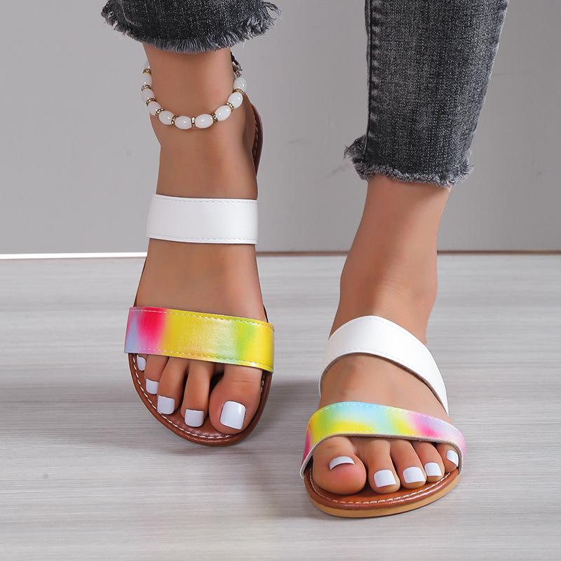 2024 женские пляжные сандалии для отдыха на открытом воздухе, новые двухслойные кожаные тапочки с принтом граффити на плоской подошве, нескользящие, прочные
