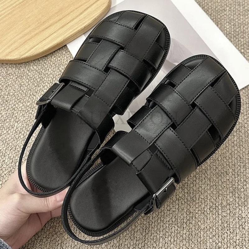 Женские плетеные сандалии для улицы, летние повседневные тапочки в стиле ретро, минималистская модная пляжная обувь, дизайнерские сандалии, Sandalias De Mujer
