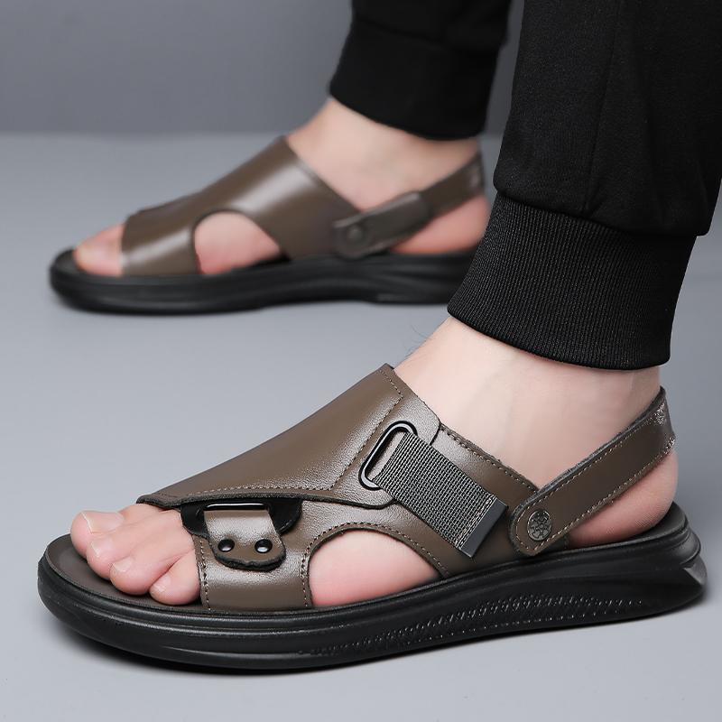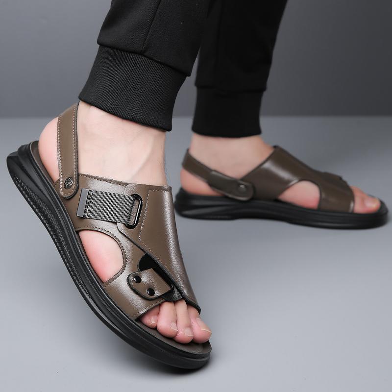Летние кроссовки Уличная мода Нескользящие Мужские сандалии Кожаные Мужские Пляжные шлепанцы Обувь Новые С открытым носком Мужские Римские сандалии