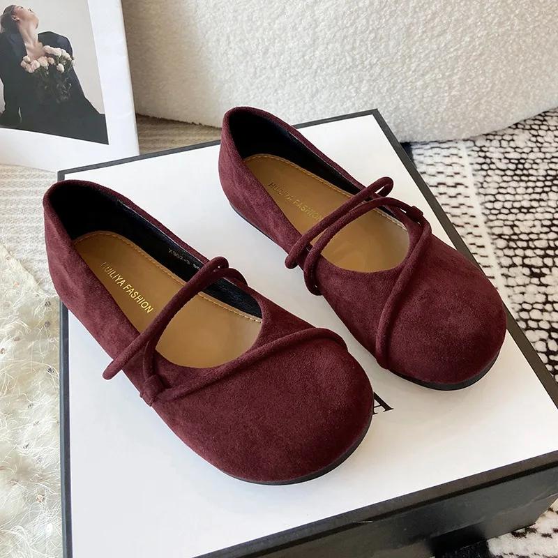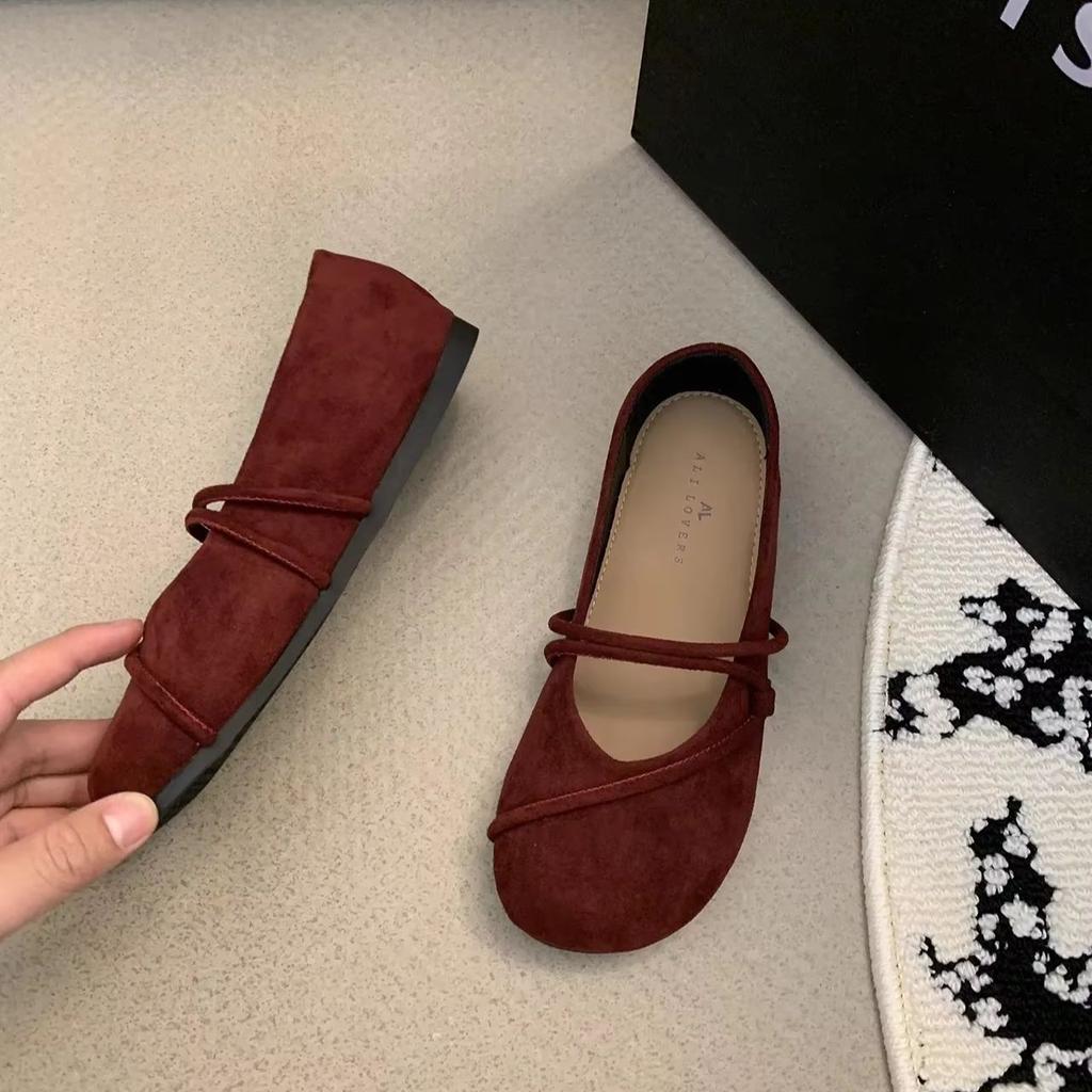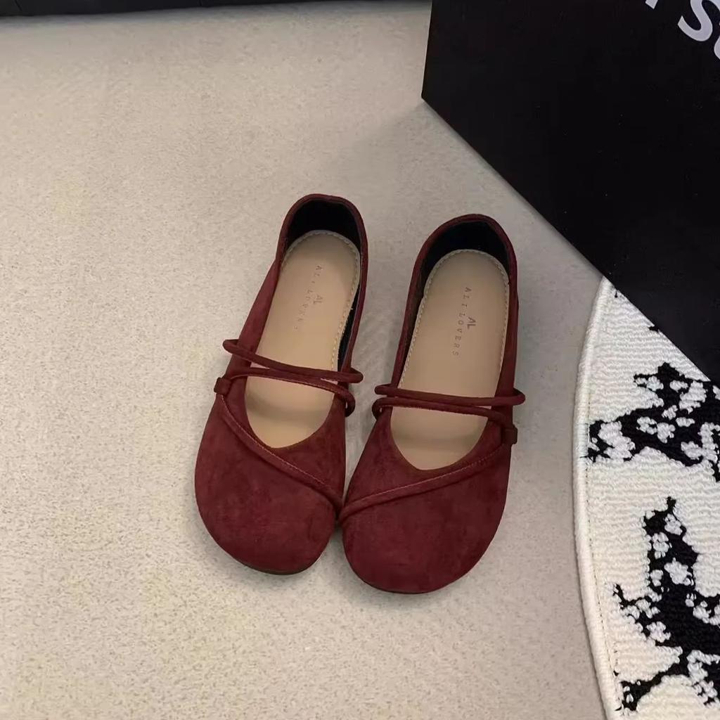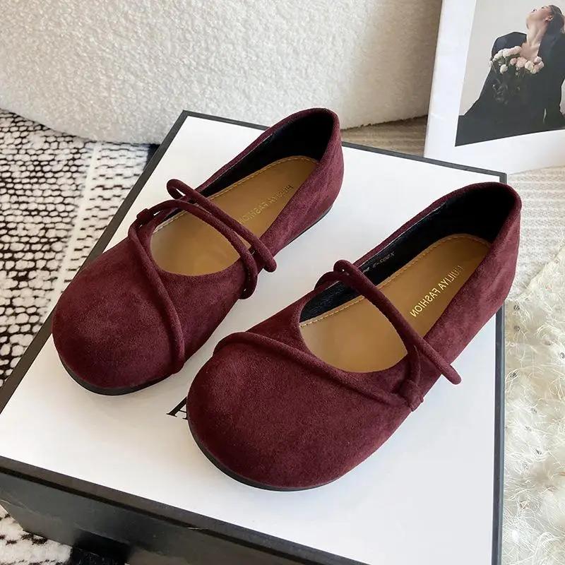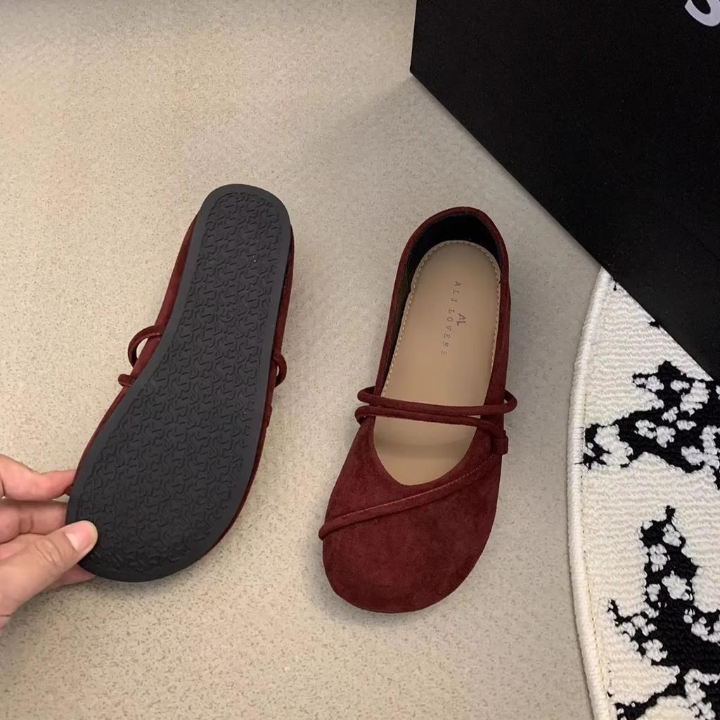 Женские красные замшевые туфли на плоской подошве с круглым носком, повседневные сандалии на плоской подошве с тонким ремешком, удобные туфли Мэри Джейн на мягкой подошве