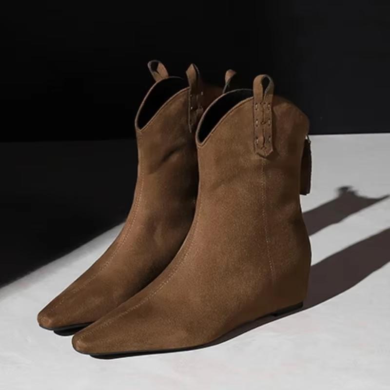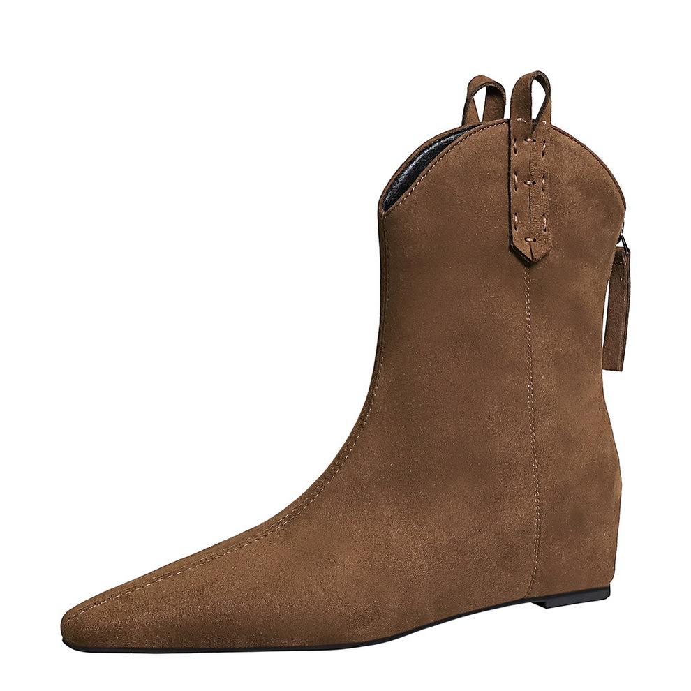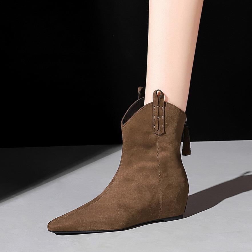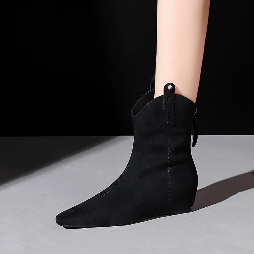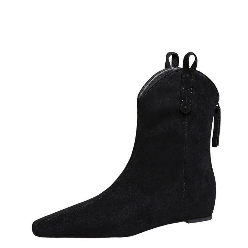 Черные ботильоны на танкетке для женщин, ретро-ботинки с заостренным носком и молнией на высоком каблуке, осень-зима 2024, элегантные уличные женские ботинки