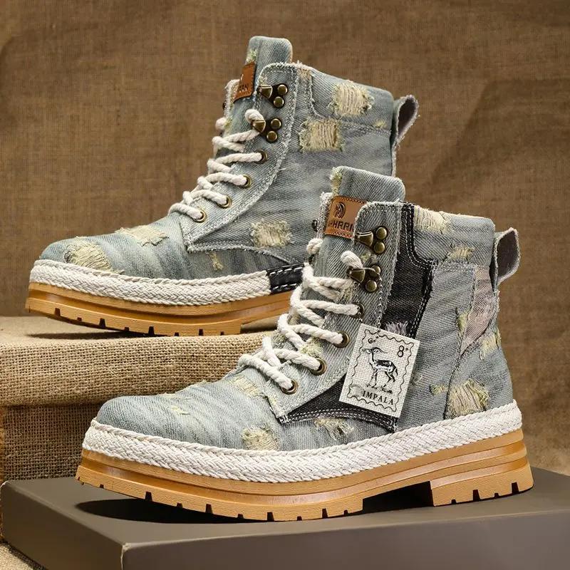 Мужская обувь парусиновые ботильоны короткие ботильоны сапоги для мужчин весна осень высокое качество оригинальные предложения распродажа винтаж повседневные