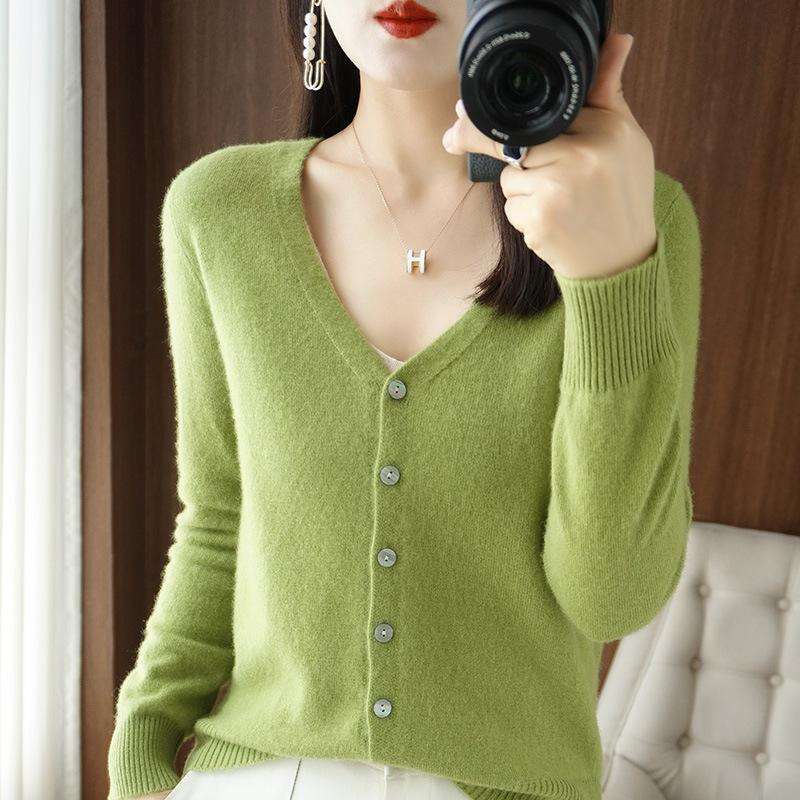 CANVAUS Повседневный шерстяной трикотаж Кардиган с V-образным вырезом - Однотонный, с длинным рукавом, застежка на пуговицы для осени/зимы