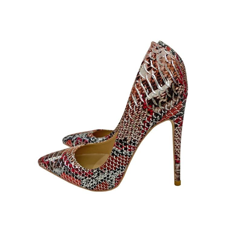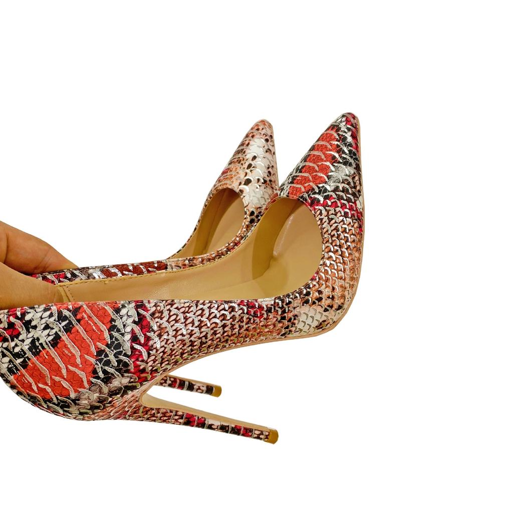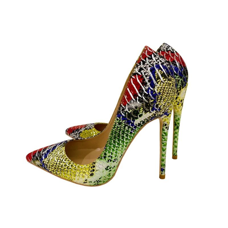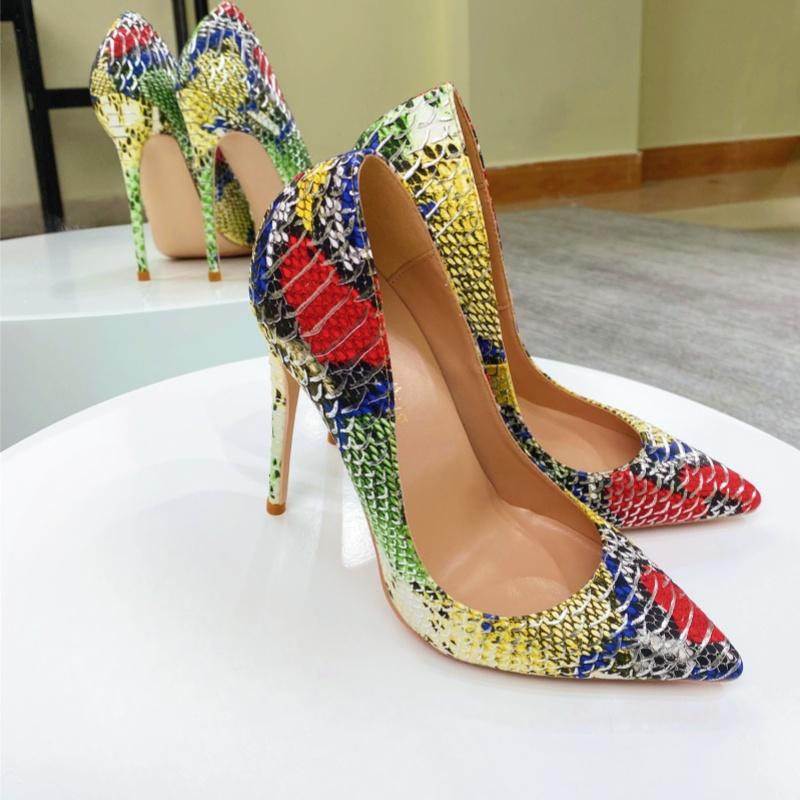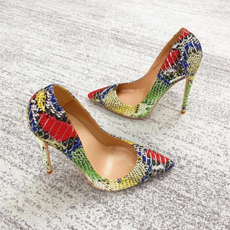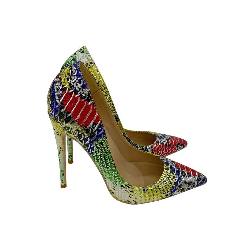 Женские туфли на высоком каблуке с цветным узором под змеиную кожу, персонализированные и модные женские туфли-одиночки