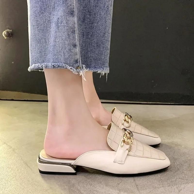 Большие тапочки женские Outside Muller Shoes весна/лето Baotou Half Slippers универсальные квадратные босоножки на низком каблуке женские