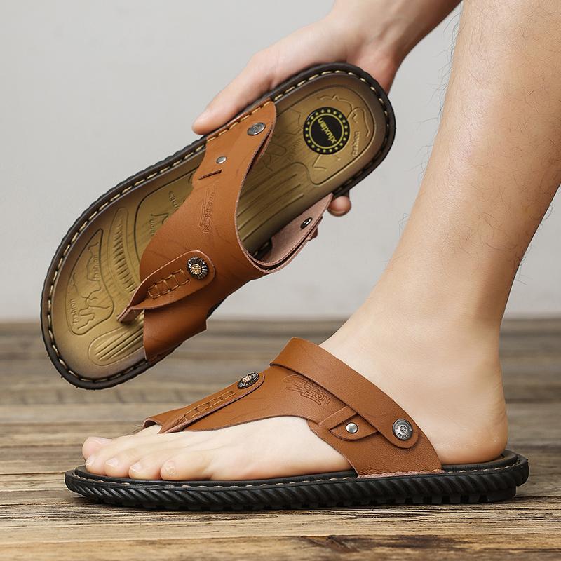 Летние мужские сандалии, нескользящие шлепанцы для мужчин, пляжные сандалии, кожаные тапочки на мягкой подошве, мужские повседневные сандалии для отдыха на открытом воздухе, большой размер — купить товар онлайн с бесплатной доставкой до всему миру!