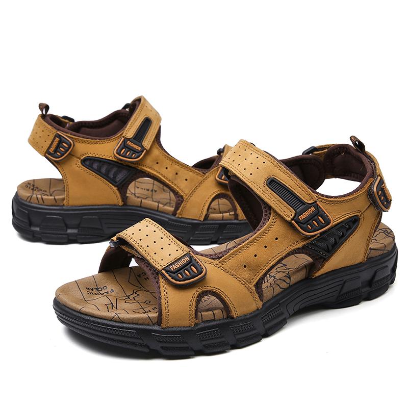 2024 летние сандалии мужские пляжные тапочки из натуральной кожи мужские сандалии модная прогулочная обувь мужские большие размеры 38-46