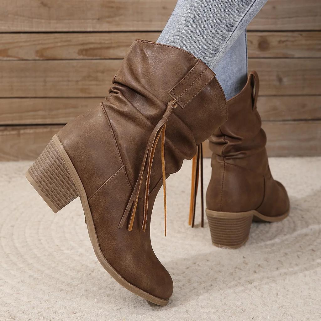Короткие женские сапоги, новые сапоги на толстом каблуке, плиссированные сапоги на высоком каблуке, сапоги средней длины с бочонком, женская обувь, женская обувь до середины голени