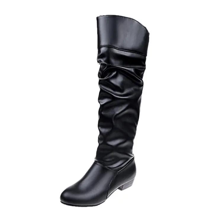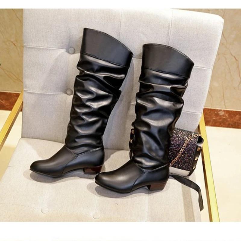 2024 новые женские сапоги до колена, теплая обувь с острым носком и толстой подошвой, модные, сексуальные, эластичные ботинки, удобная повседневная женская обувь