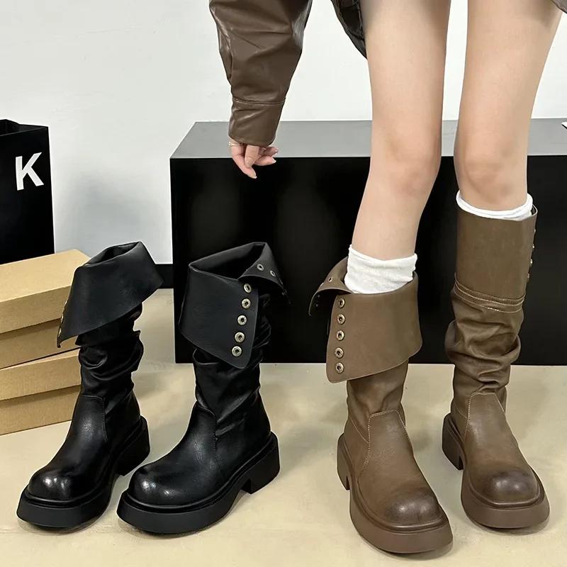 Сапоги до колена женские модные женские сапоги на пуговицах с низким каблуком рыцарские сапоги новые осенне-зимние женские длинные сапоги Zapatos De Mujer