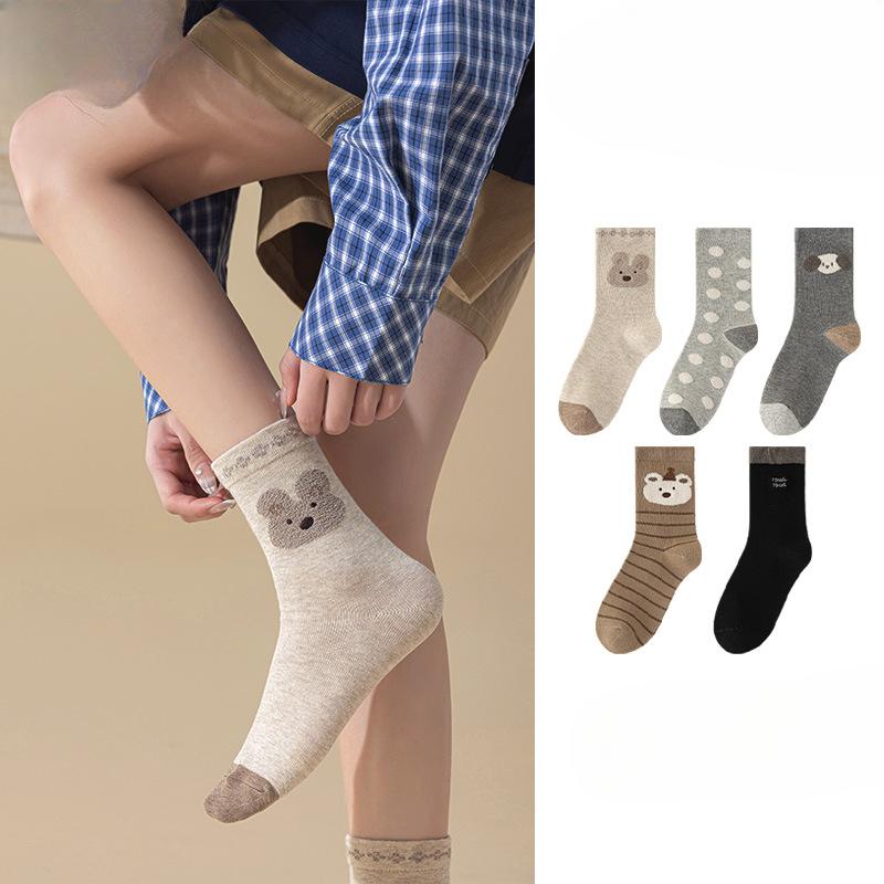 Женские осенне-зимние полосатые носки-гольфы в горошек с мультяшной вышивкой щенка, впитывающие пот и дышащие — купить товар онлайн с бесплатной доставкой по всему миру!