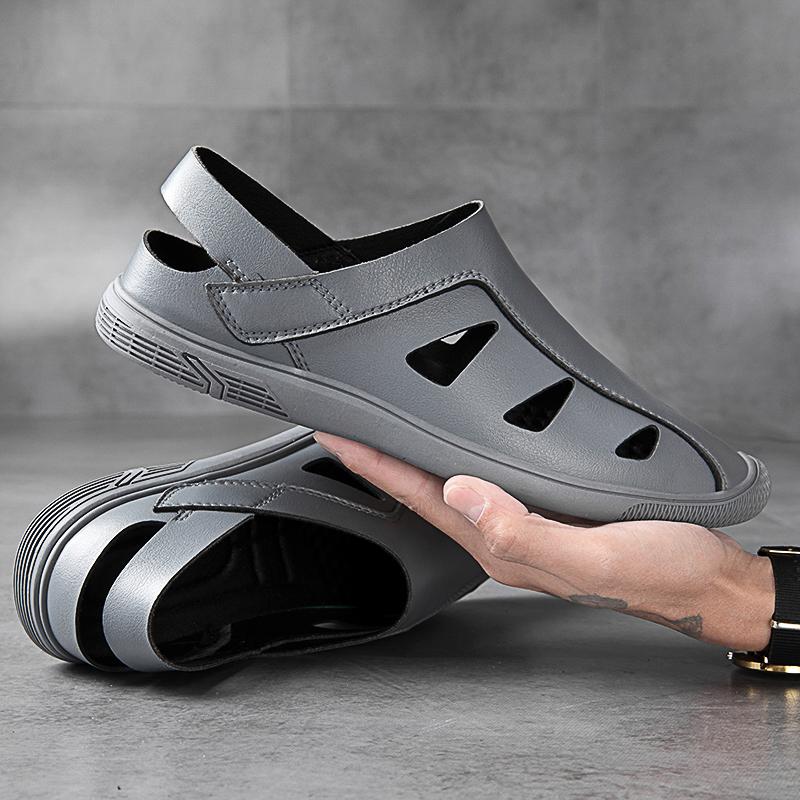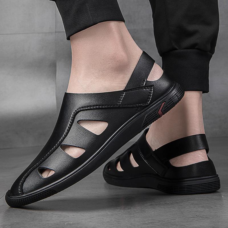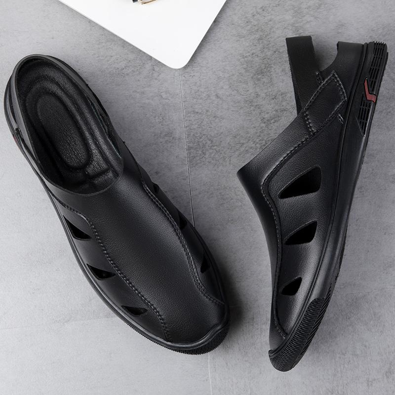 Сандалии мужские из натуральной кожи, высококачественная дышащая повседневная обувь для отдыха на природе, легкие удобные пляжные сандалии, классические черные мужские туфли