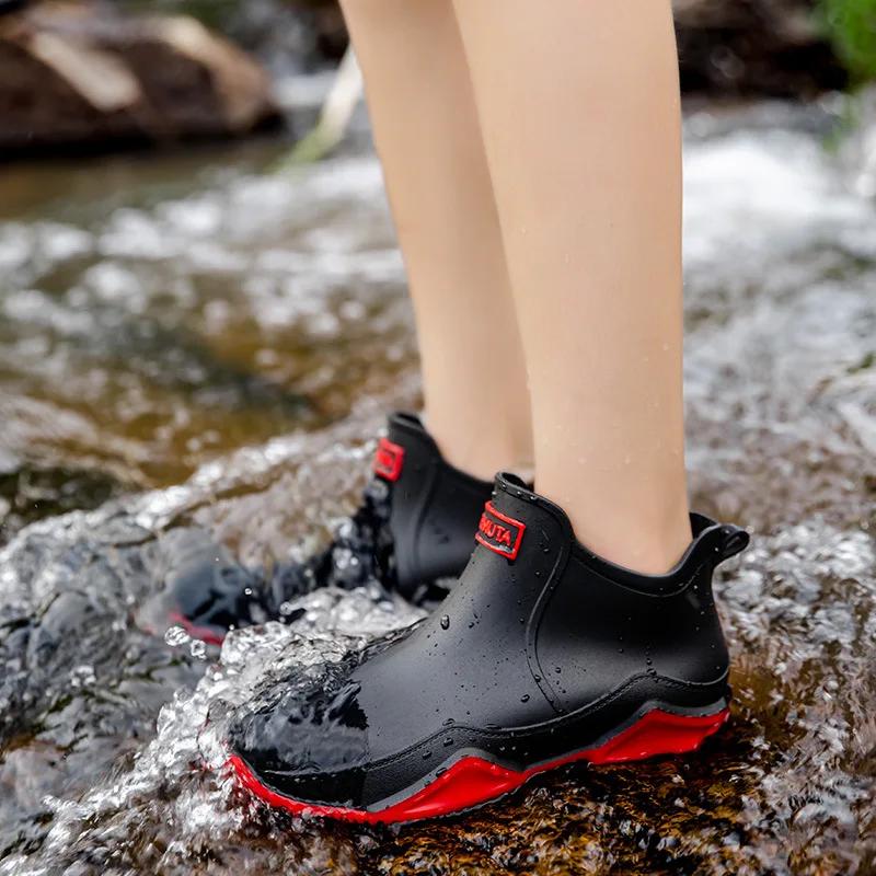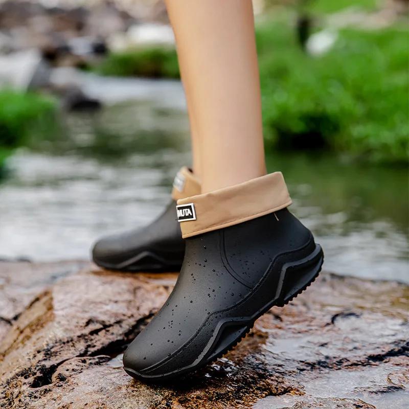 Модные резиновые мужские ботинки, трендовые мужские непромокаемые сапоги, уличная обувь на платформе, теплые водонепроницаемые рабочие мужские ботинки без шнуровки