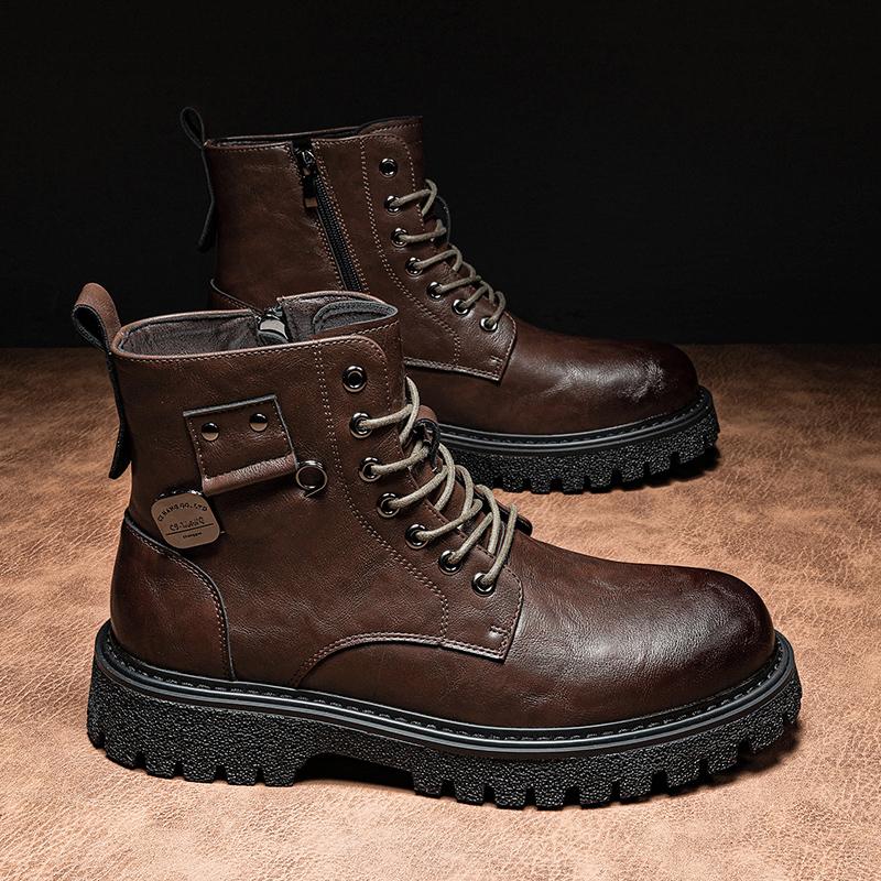 Качественные мужские ботинки с круглым носком, горячая распродажа, зимние повседневные кожаные уличные стильные ботильоны, модные британские нескользящие высокие ботинки — купить товар онлайн с бесплатной доставкой по всему миру!