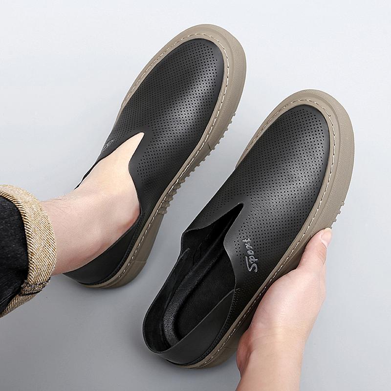 Летняя дышащая мужская кожаная повседневная обувь, модные резиновые мокасины ручной работы, уличные прогулочные спортивные кроссовки, мокасины