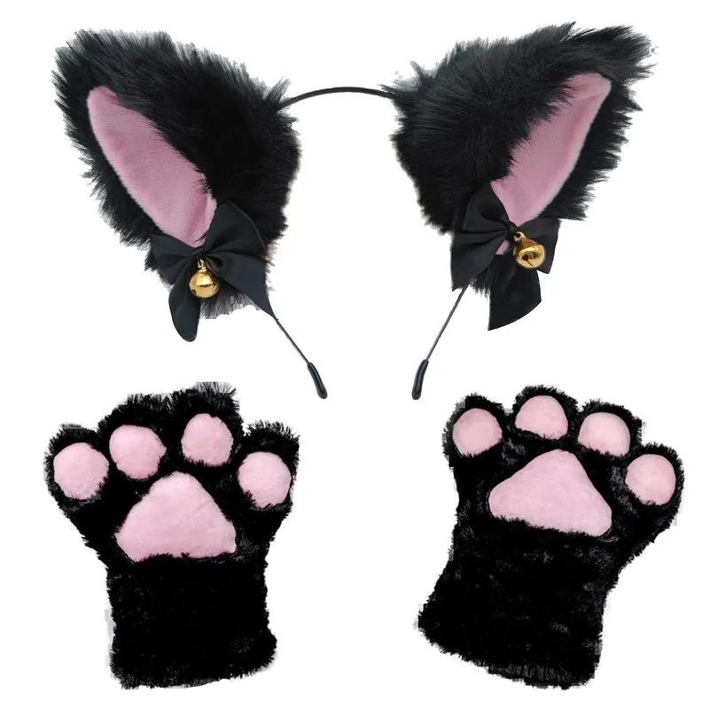 Лолита Кошачьи Ушки Лапки Перчатки Ободок Танец Выпускной Хэллоуин Кошачьи Ушки Головной Убор Косплей Кошачьи Ушки Аниме Вечеринка Костюм Колокольчик Головной Убор Высокий