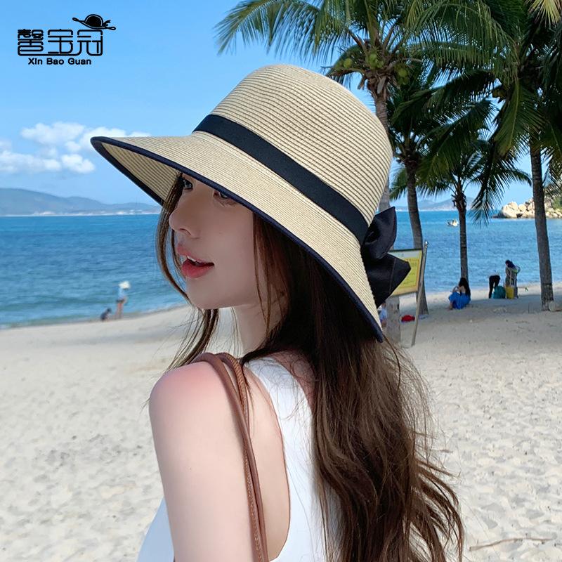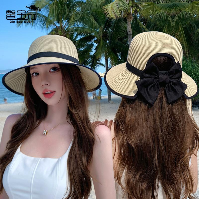 8485 Летняя солнцезащитная шляпа из соломы Детская модная шляпа с бантом Солнцезащитная шляпа с большими полями Пляжная шляпа от солнца