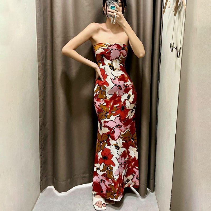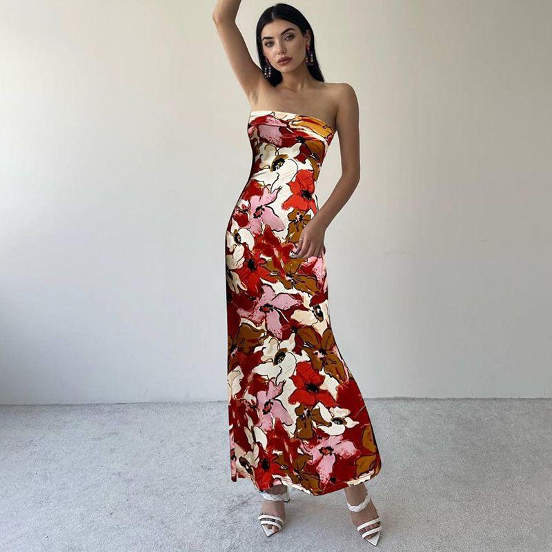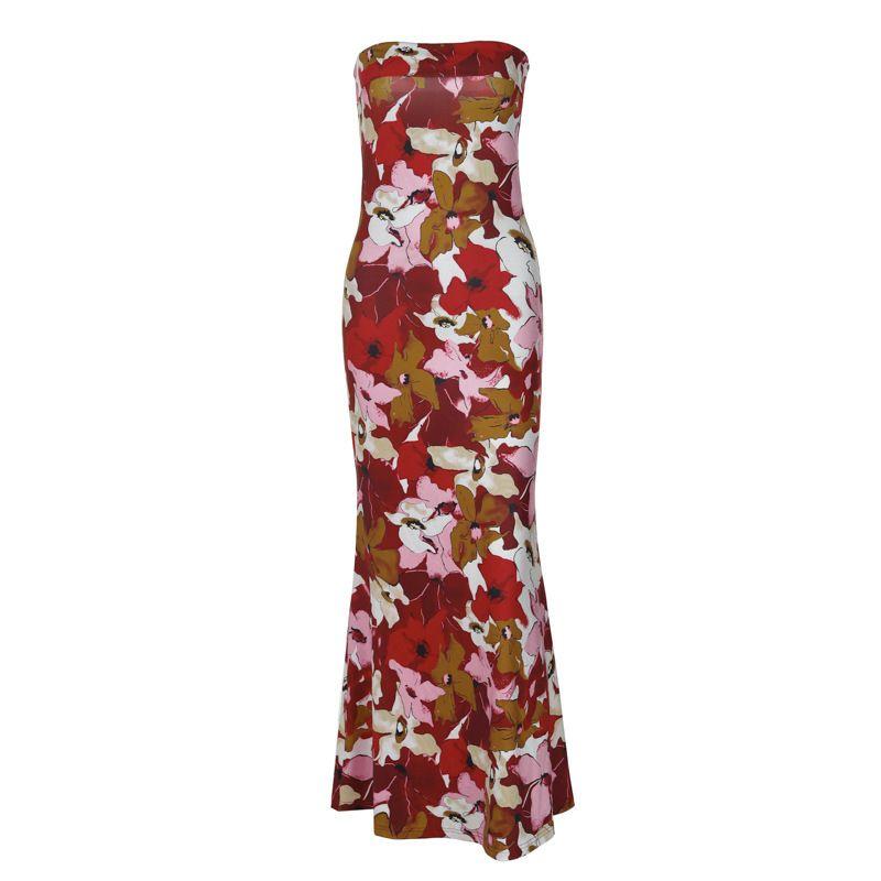 Amazon Women clothes 2024 Summer New Product Fashion Sexy Print Slim fit Tube Top Dress Foreign Trade