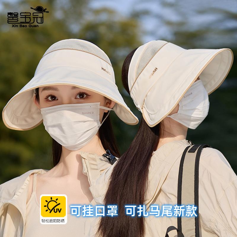 Летняя шляпа от солнца детская с большими полями, можно завязать хвостик, шляпа с открытым верхом, уличная, универсальная, модная, можно повесить маску, шляпа для защиты от солнца