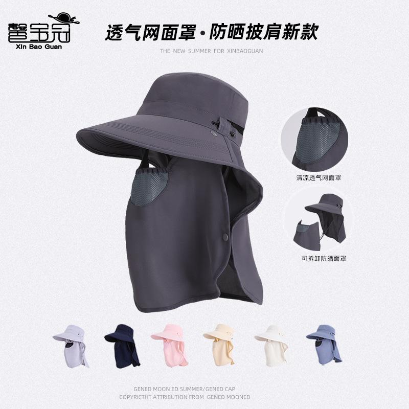Весенне-летняя уличная шляпа от солнца с большими полями, шаль для защиты шеи, шляпа-ведро, съемная маска для лица, шляпа для защиты от солнца, женская