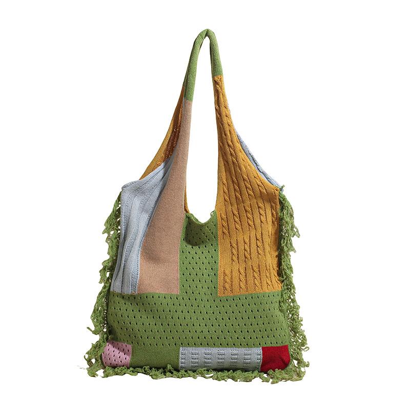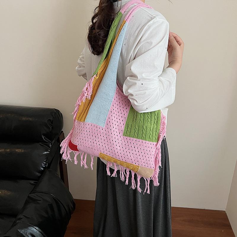 Женская вязаная сумка через плечо с кисточками, модная, трендовая, портативная сумка-тоут большой вместимости