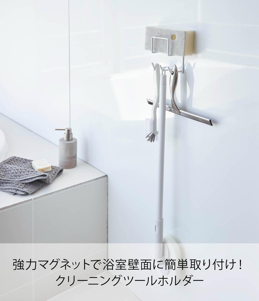 Yamazaki Magnetic Bathroom Cleaning Tool W8 x D6 x Tower Bathroom Bath Cleaning 4976 Holder, White, Approx. H12cm, Rack, Storage,