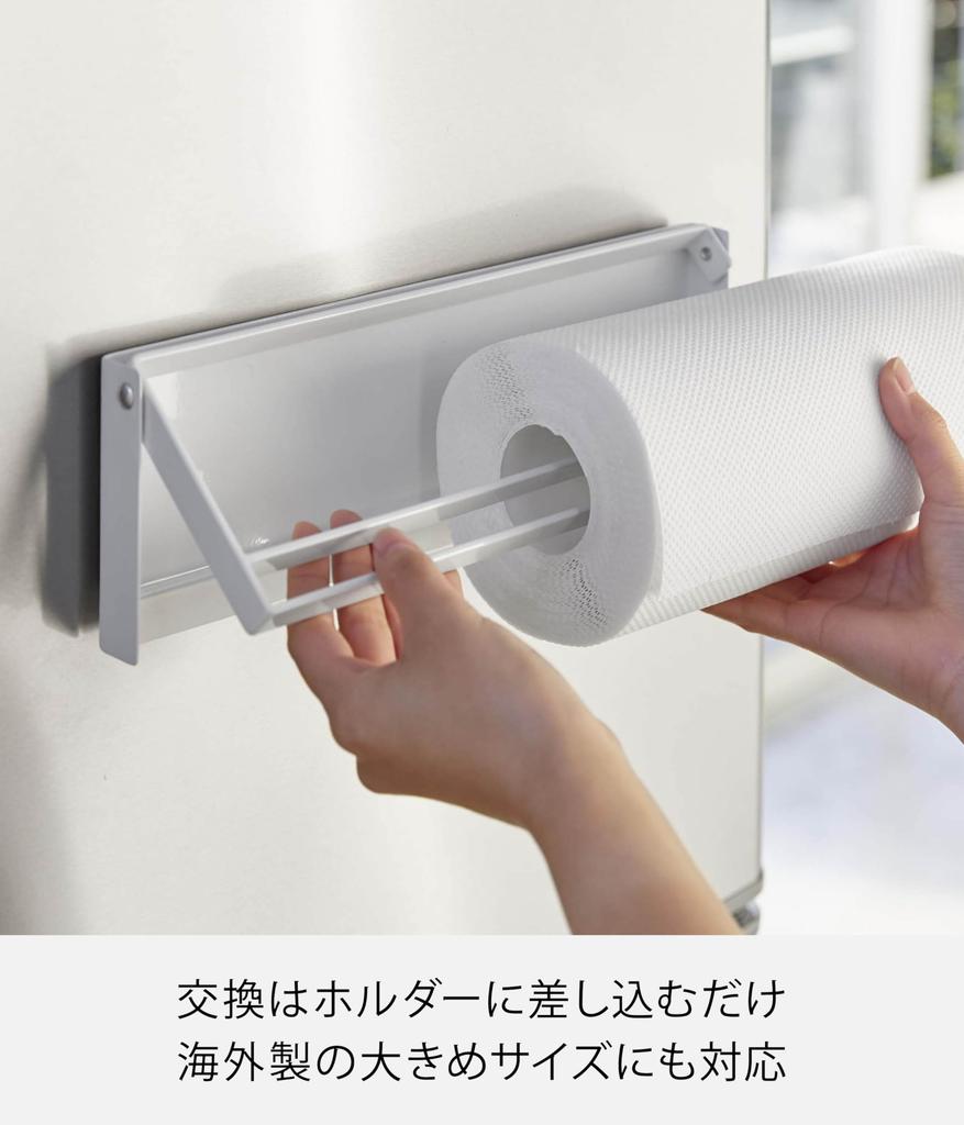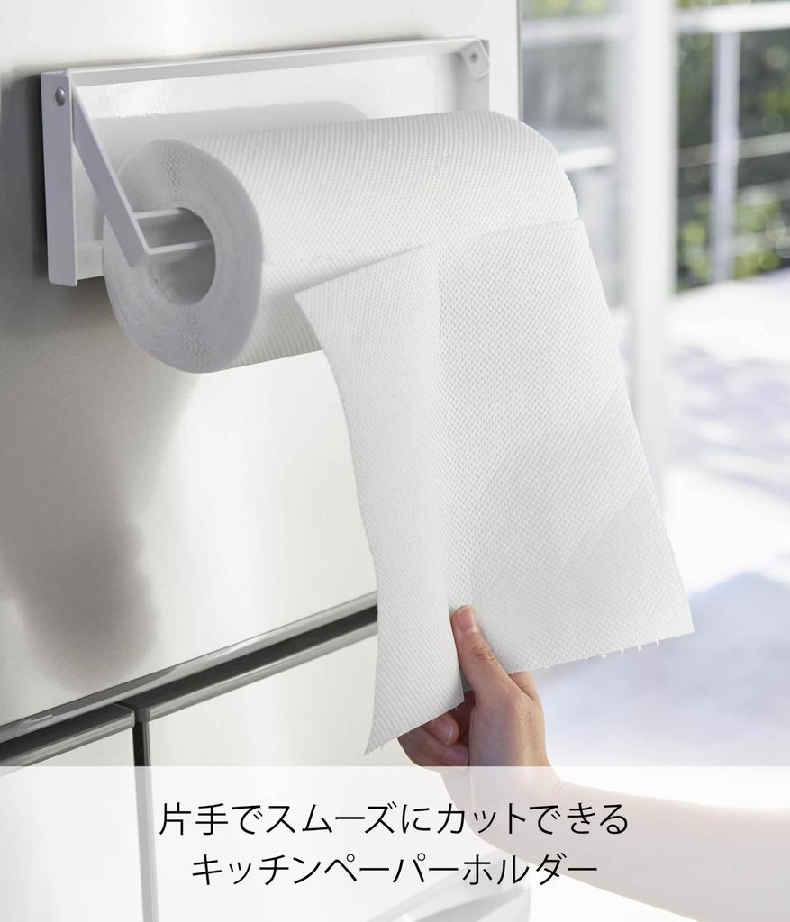 Магнитный держатель для кухонной бумаги Yamazaki с x x Совместим с бумажными рулонами Сделано в 4941 Резка одной рукой, Белый, Прибл.. Ш30,5 Г2,5 В9,5см, Башня,