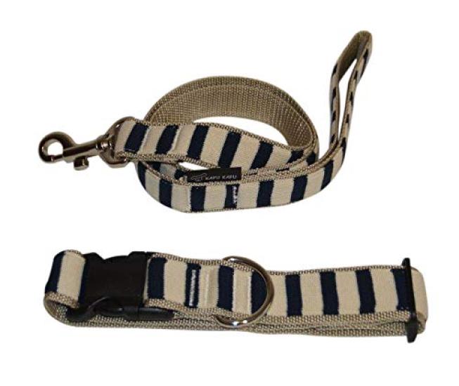 Kafkaf Collar BO Border Lead and Collar Navy Beige L