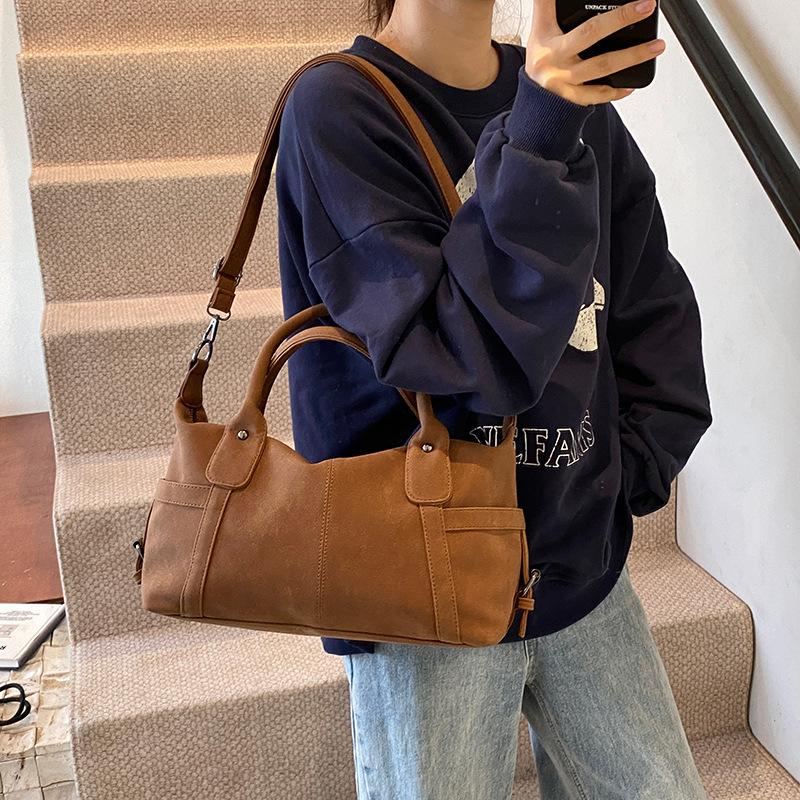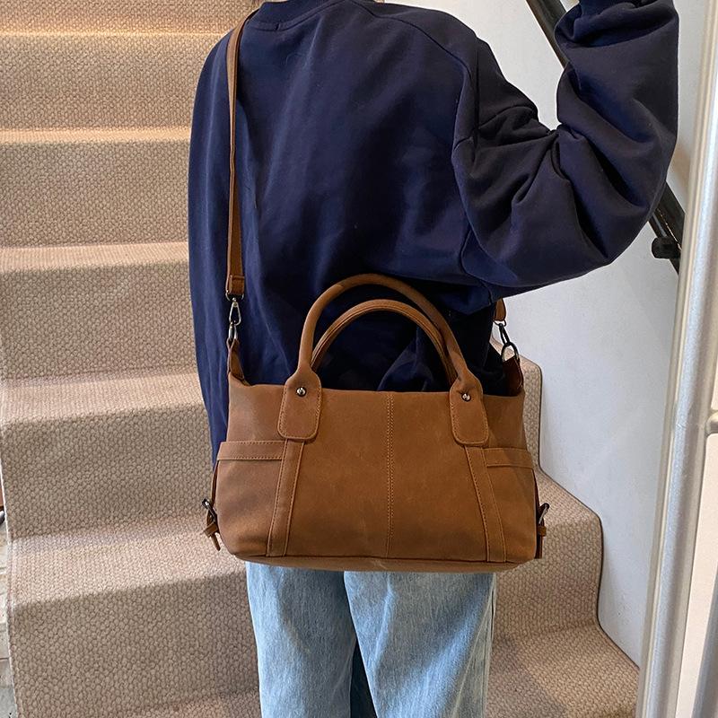 Ретро сумка-тоут женская осенне-зимняя новая модная матовая сумка через плечо большой вместимости для поездок на работу и мессенджер