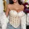 Французский стиль Причудливый Дизайн для особых интересов Вышивка Корсет Рыбий скелет Чистое желание Бандаж Открытая спина Топ-труба Жилет Сексуальный Прозрачный