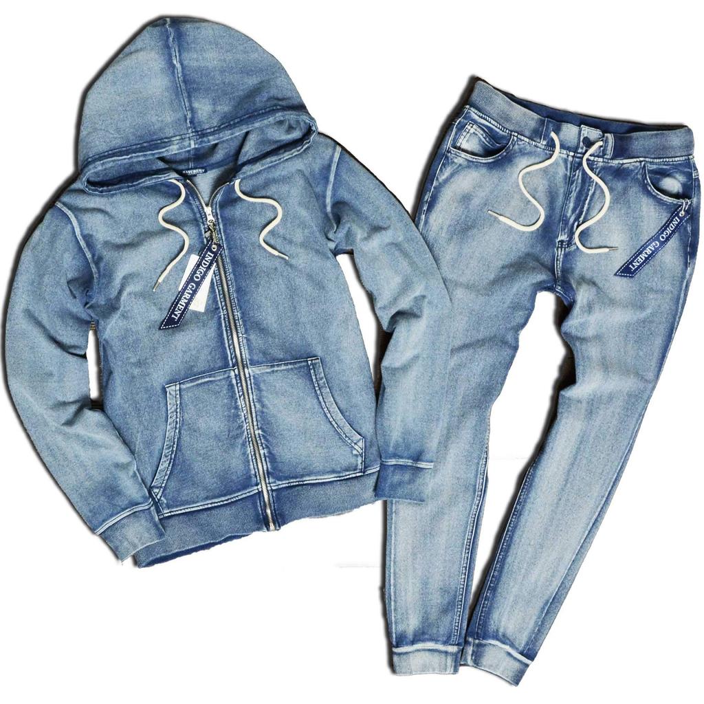 Джинсовый комплект с худи на молнии и брюками-джоггерами, спортивным верхом и низом, сшитый свитшот 26128 Размер [slow&easy] (Повседневная мода) - Набор,