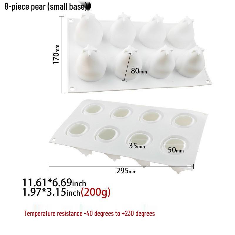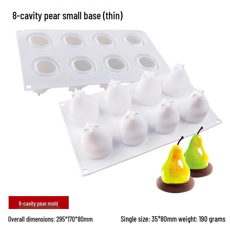 3D Силиконовые формы для муссовых тортов с фруктами: Груша, Яблоко, Ананас, Персик, Дуриан, Малина.