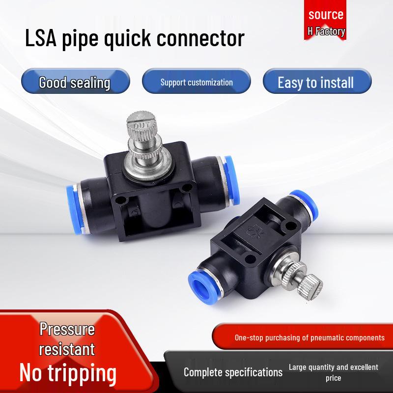 Пневматический дроссельный клапан для воздушного шланга LSA4 PA6, регулирование скорости, регулируемый расход, односторонняя блокировка