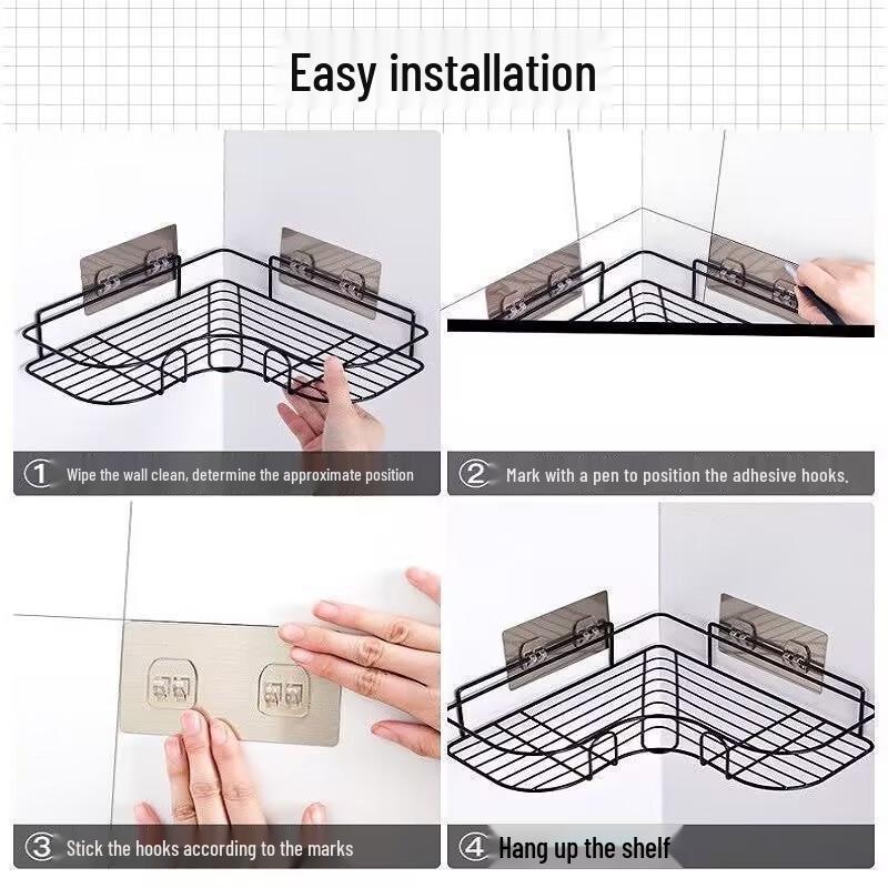 Угловая душевая полка для ванной без сверления - Настенное хранение для кухни и ванной