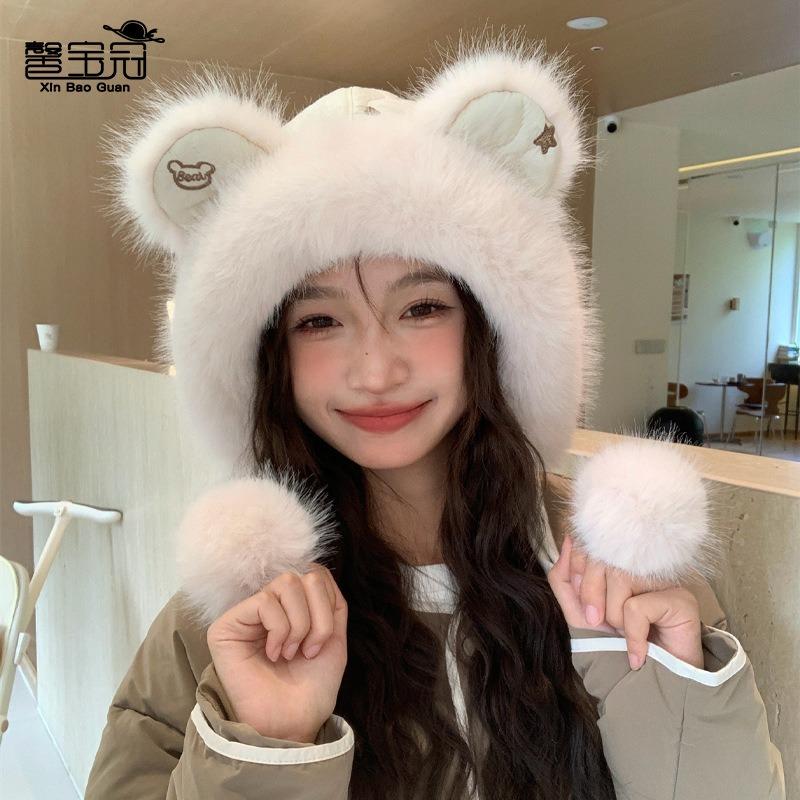 Новая милая шапка-медведь женская плюшевая теплая защита для ушей панама делает лицо маленьким универсальная модная