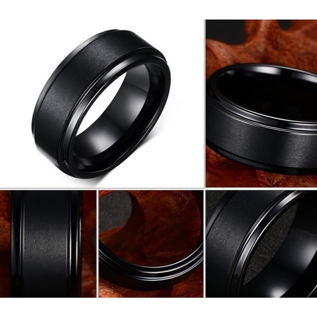 Модное мужское кольцо 8 мм Обручальное кольцо Черный карбид вольфрама Мужское матовое кольцо с проволочной текстурой Мужское байкерское украшение