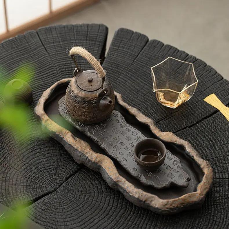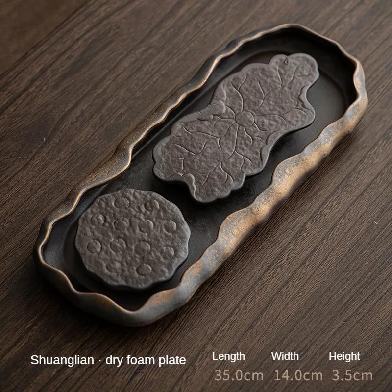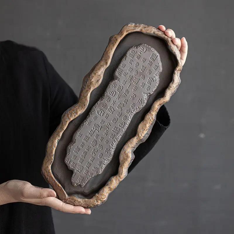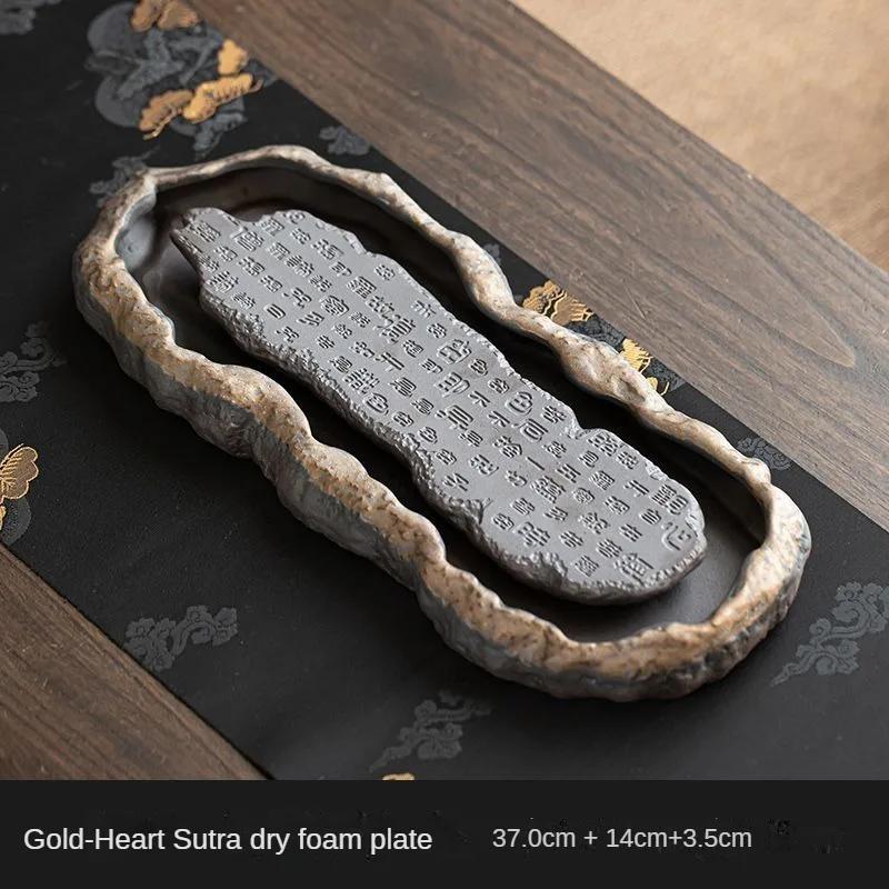 Винтажный чайный поднос, Позолоченный чайный поднос «Сутра Сердца Дзен», Чайный поднос из грубой керамики, Бытовое хранение воды, Высококлассный сухой заварник