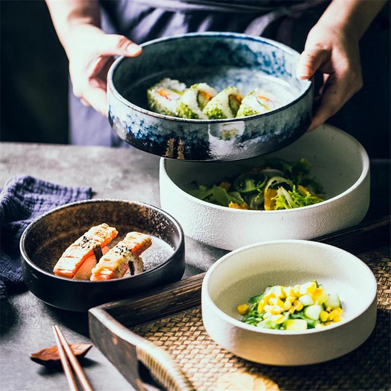 Японская креативная керамическая миска Салат Миска для густого супа Миска для тушеного супа Ресторан Модные блюда Глубокая Фруктовая миска тарелка блюда