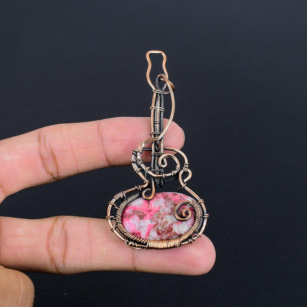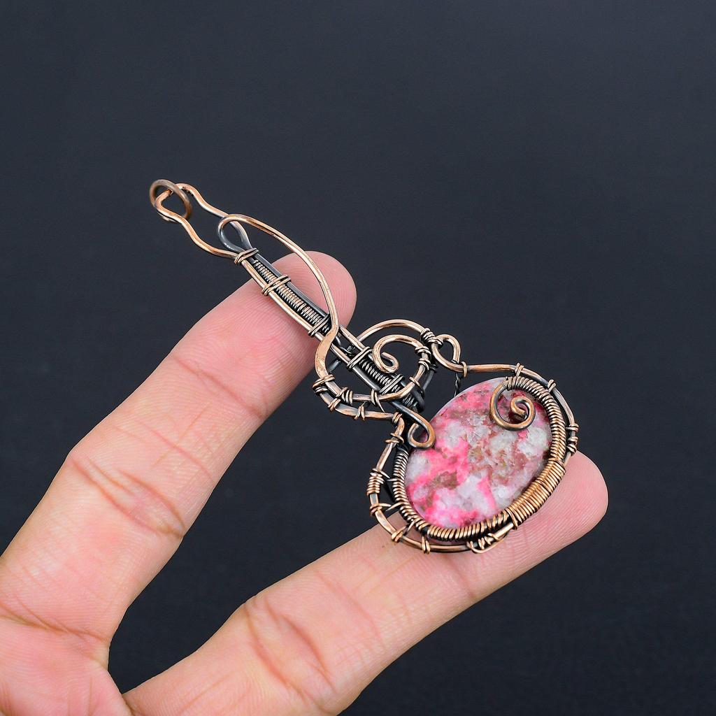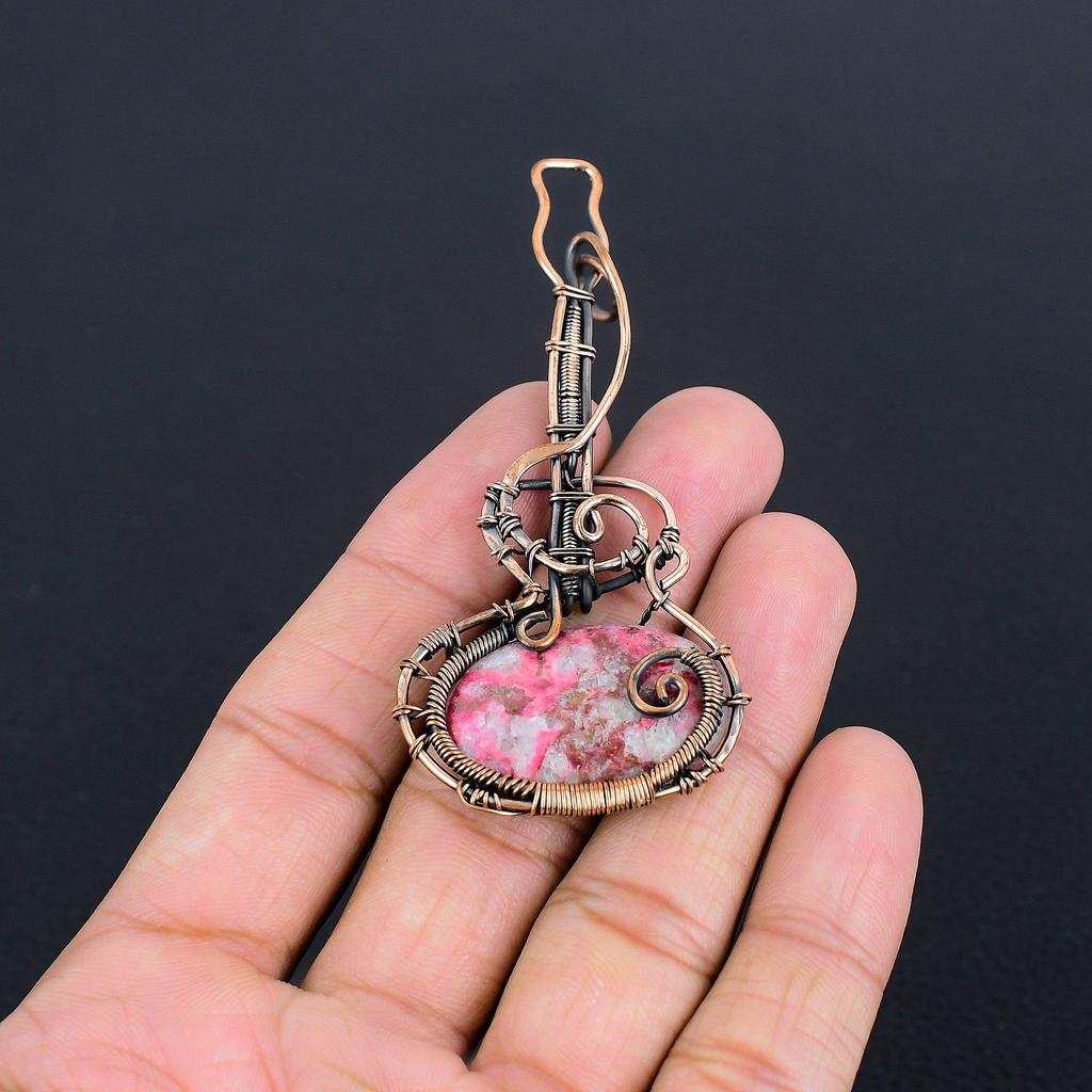 Pink Thulite Gemstone Pendant 999 Copper Wire Wrapped Jewelry, Handmade Antique Pendant Jewelry, Gift For Mother