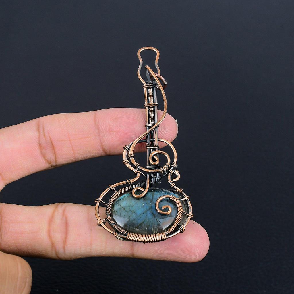 Подвеска из лабрадорита, Подвеска ручной работы, обернутая медной проволокой 999 пробы, Антикварное украшение, Для подарка, Серебряное украшение