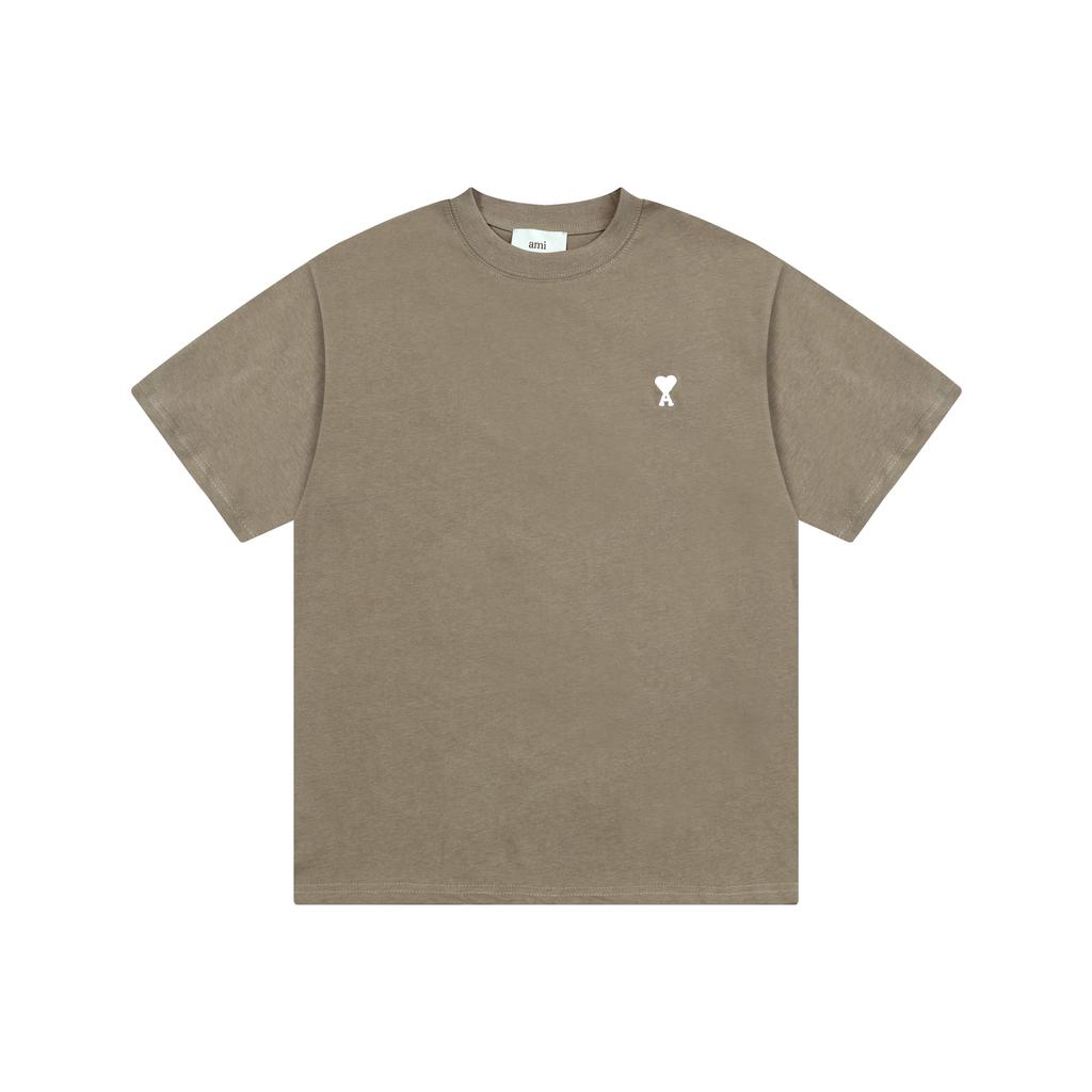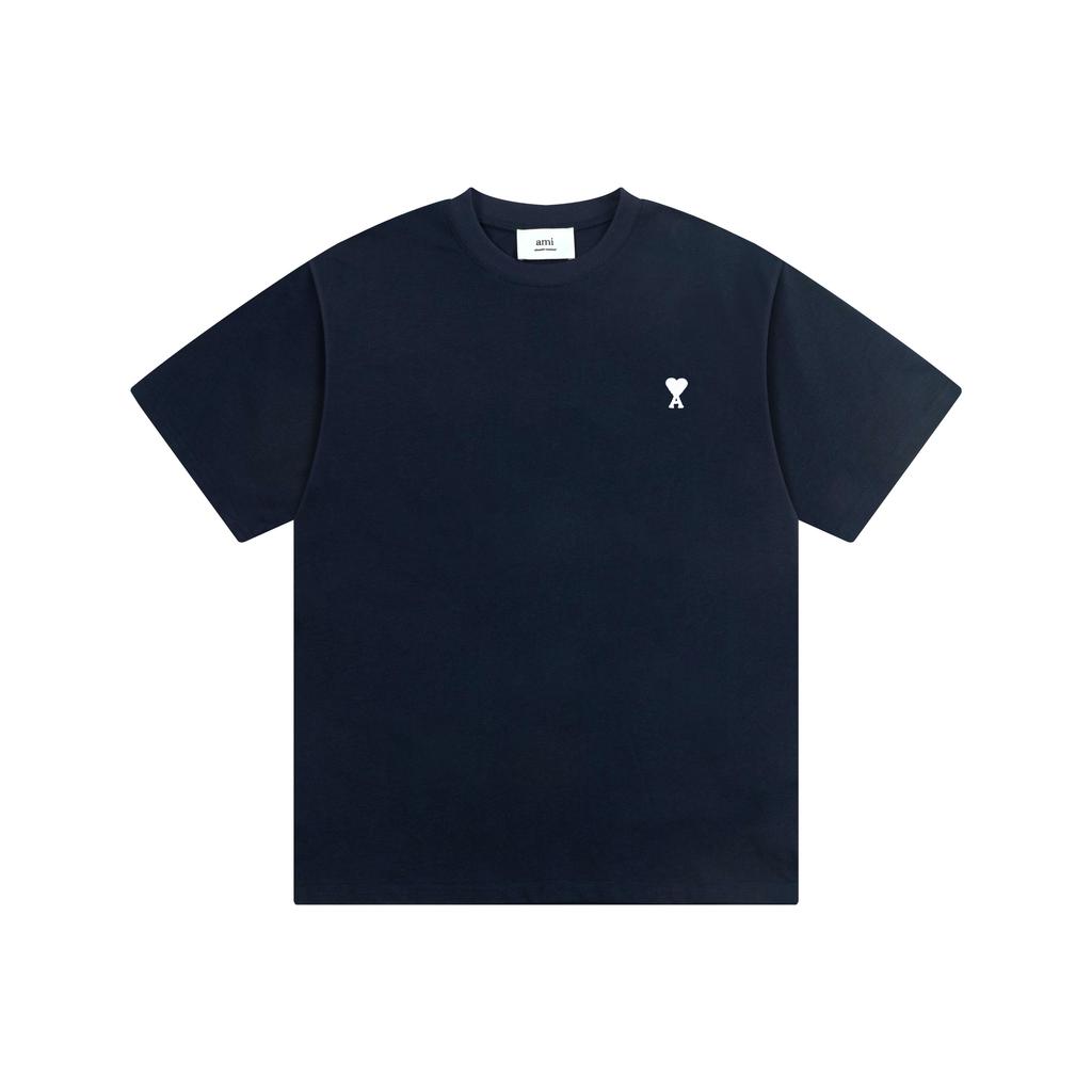 AMI 2025 Лето Новая Любовь Вышитый Логотип Парная Хлопковая Футболка с Коротким Рукавом и Круглым Вырезом