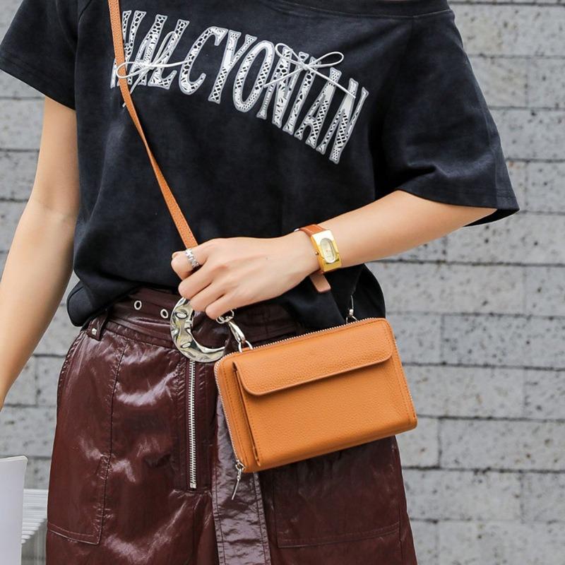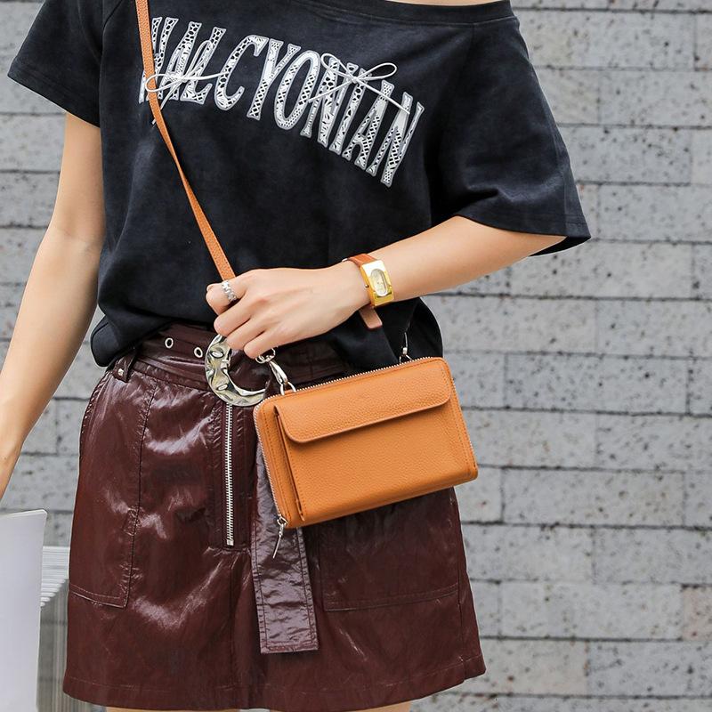 Сумка-мессенджер на плечо из коровьей кожи первого слоя Новая женская сумка для мобильного телефона Простая и модная сумка для ключей Маленькая квадратная сумка