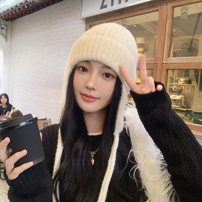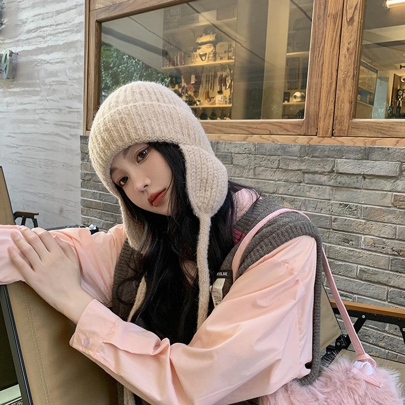 Шапка Женская Шерстяная Шапка-Пуловер Студенческая Теплая Защита Ушей Вязаная Шапка Корейская Версия Универсальная Милая Модная Шапка Лей Фэна