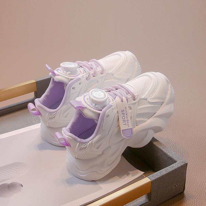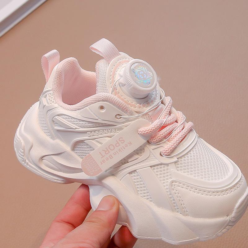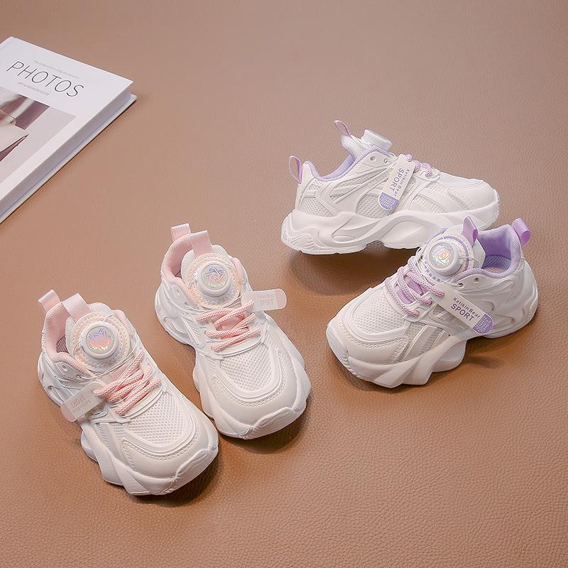 Спортивная обувь для девочек 2025 лето новая детская обувь с застежкой-колесиком, одинарная сетчатая обувь для девочек, сетчатые дышащие маленькие белые туфли для детей среднего и старшего возраста
