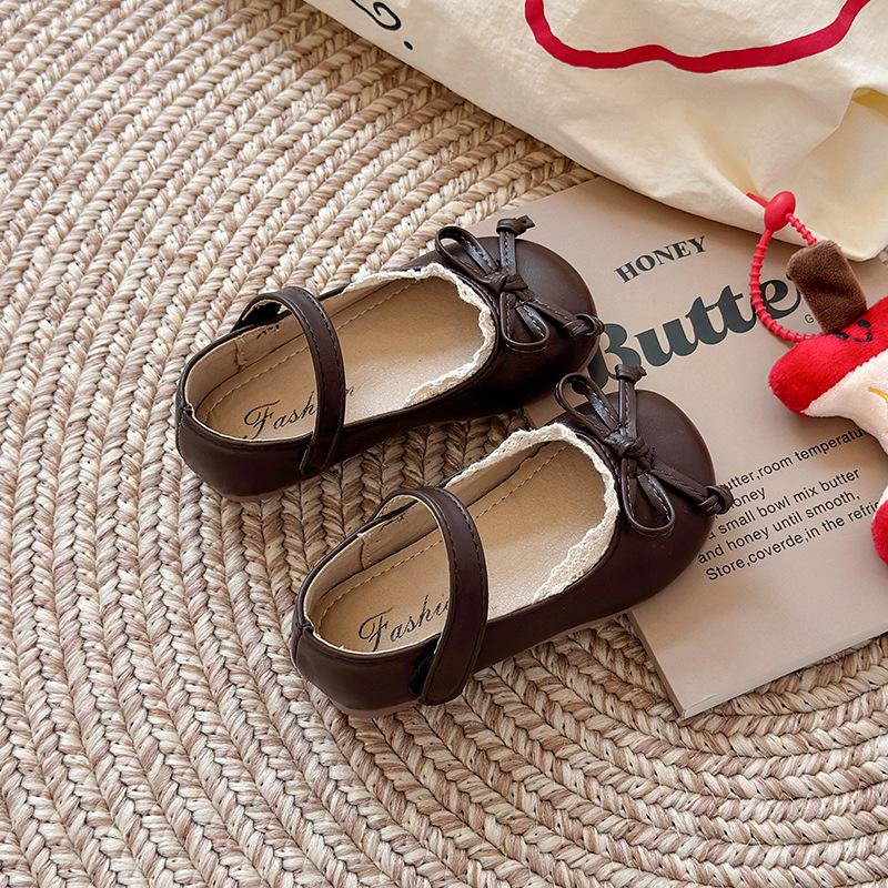 Девочки маленькие кожаные туфли осень новые детские мягкая подошва туфли-бини девочка младенец бант туфли принцессы маленькая девочка одинарные туфли