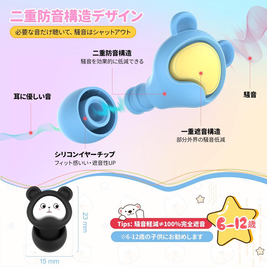 Эргономичные беруши: Эти детские беруши Q37 были созданы в результате тщательного анализа угла и формы детских ушей, специально адаптированных к их меньшим слуховым проходам.. Двухслойная звукоизолирующая конструкция, включающая высококачественный звукоизолирующий фильтр и ушные вкладыши, эффективно снижает шум. Милый дизайн «мишки» идеально прилегает к уху, а головка «мишки» изготовлена из мягкого силикона двух разных уровней твердости, что создает идеальную герметичность, повторяющую форму слухового прохода и эффективно ослабляющую шум.. Они подходят для различных форм ушей, не создают ощущения воды в ухе и сидят естественно, надежно и с минимальным дискомфортом.. Их также можно использовать в качестве берушей для самолета, эффективно снижающих боль и дискомфорт в барабанной перепонке и ухе, вызванные внезапными изменениями давления воздуха во время взлета и посадки.
