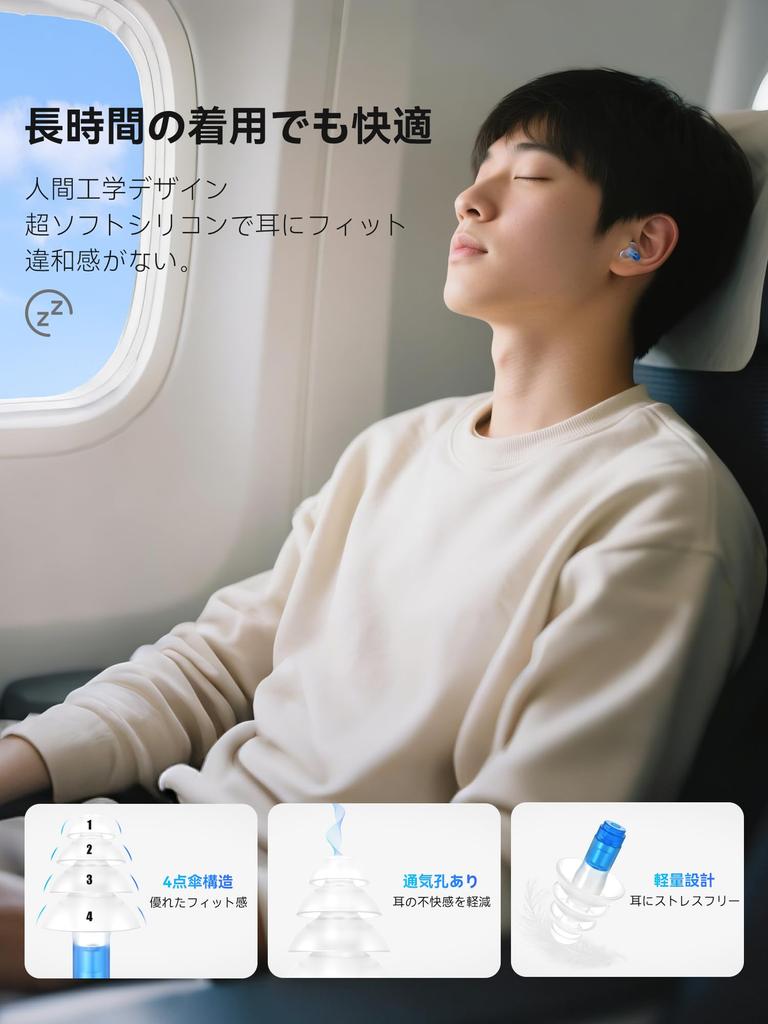 [Новинка 2025 года: Беруши для самолета] -- Беруши для самолета Quietide эффективно снижают боль в барабанной перепонке и ушах, а также дискомфорт, вызванные внезапными изменениями давления воздуха во время взлета и посадки. В отличие от пенопластовых берушей, средства защиты слуха Quietide разработаны для обеспечения определенного уровня снижения звукового давления, при этом безопасно снижая громкость до уровня, который не повредит ваш слух, не ухудшая качество звука.. Это минимизирует риск вызванной шумом потери слуха и тиннитуса во время взлета и посадки. Они отлично подходят для различных ситуаций, не только для полетов, включая поезда, автобусы, офис, учебу и сон.