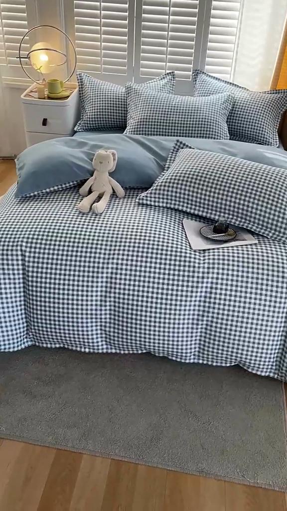Клетчатый Полосатый Простыня Пододеяльник Твил Утолщенный Пододеяльник Постельное Белье Пододеяльник Комплект из трех предметов Простыня